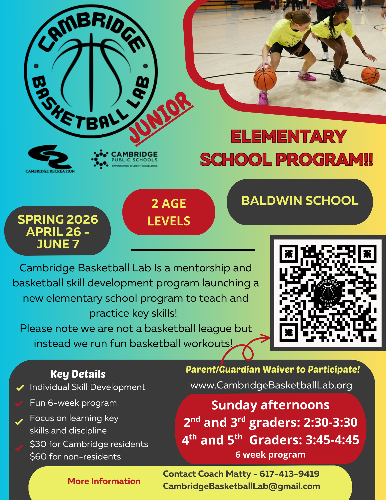 Cambridge Basketball Lab is a mentorship and basketball skill development program launching a new elementary school program to teach and practice key skills!